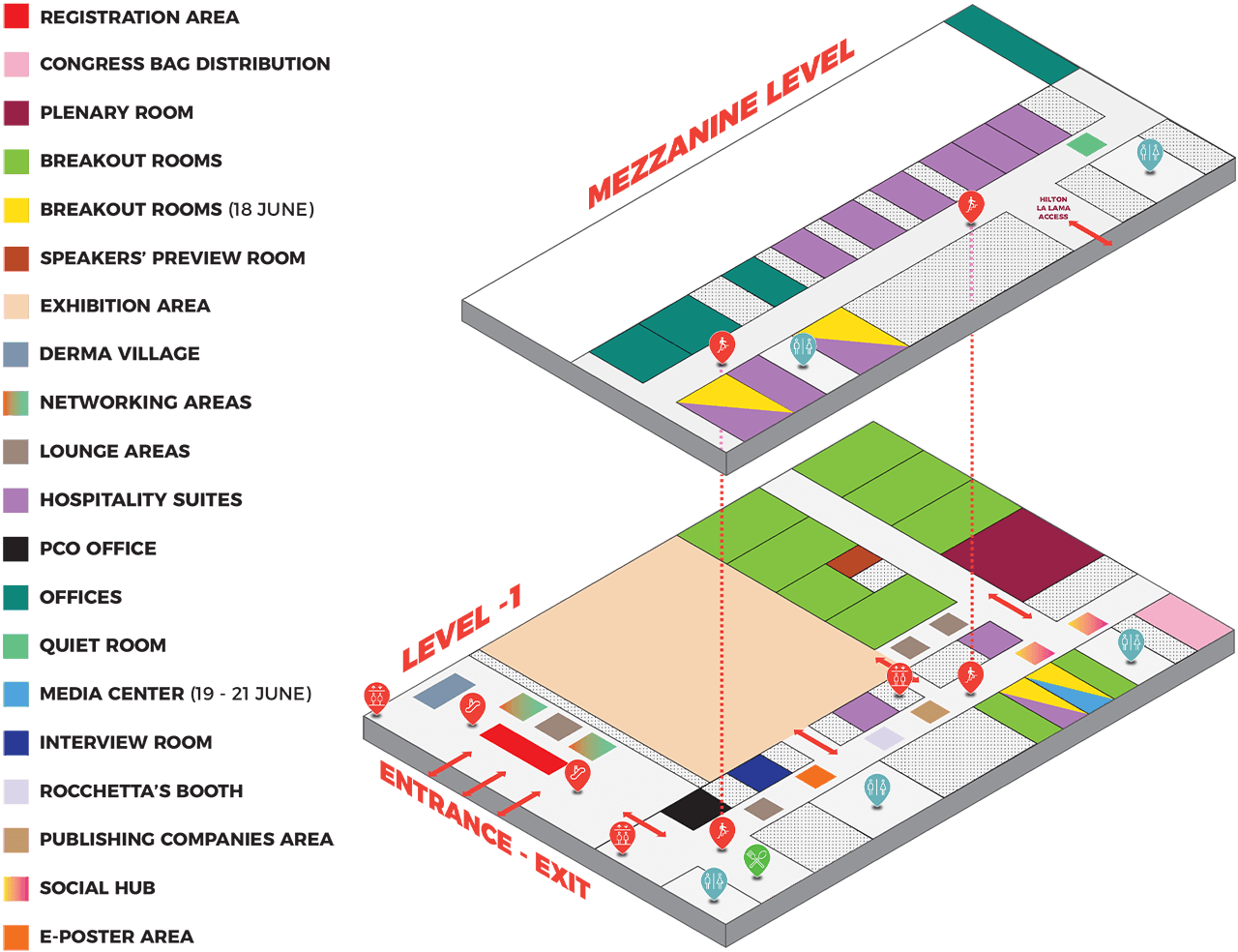 The Exhibition Area is located at Level – 1 of the congress venue and it can be accessed exclusively from the concourse.